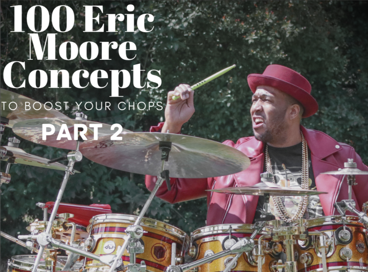 “100 Eric Moore Concepts” is about exploring different musical ideas, chops, and stickings. Each idea is transcribed and explained. The goal is to learn each concept slow.